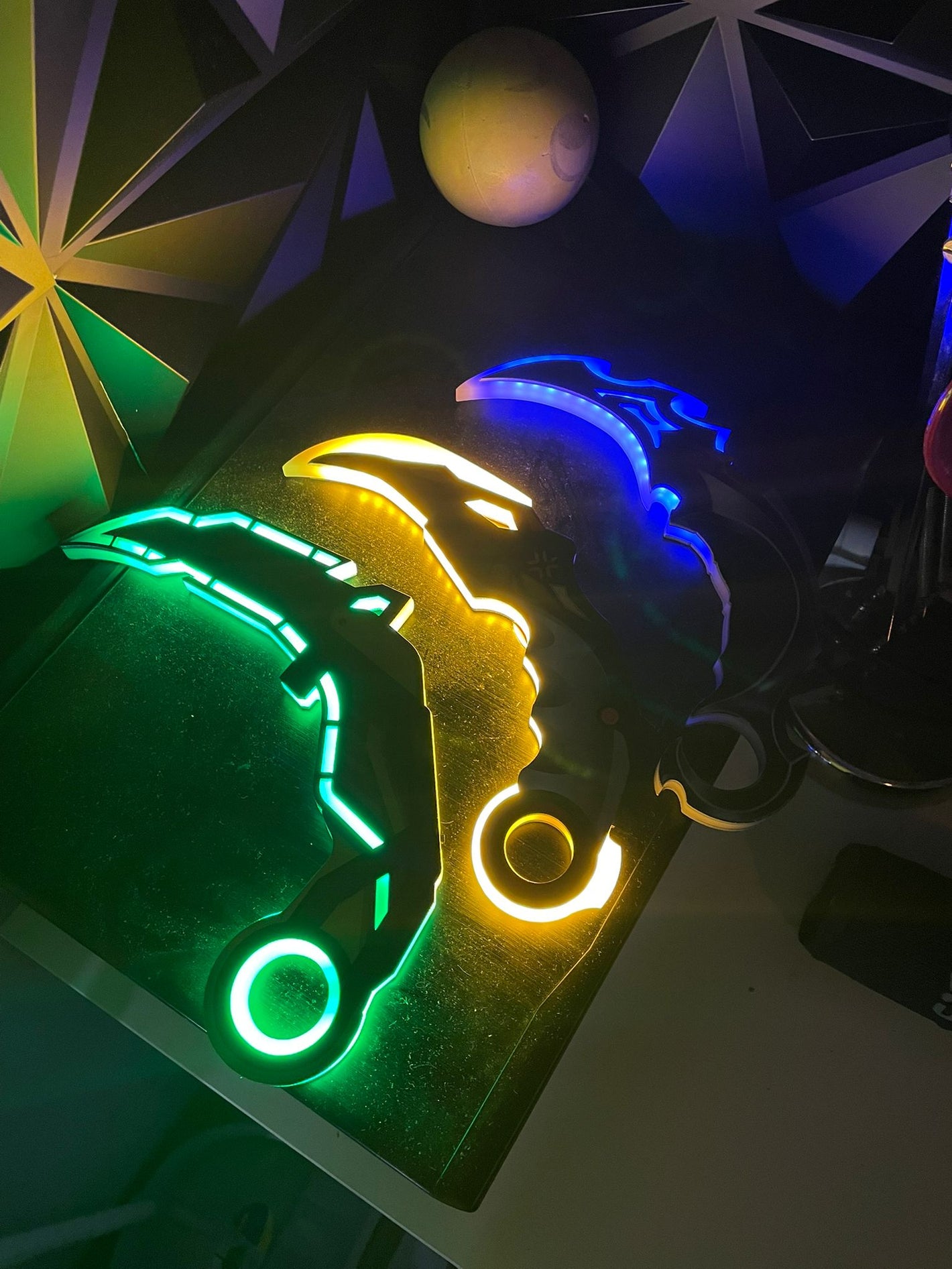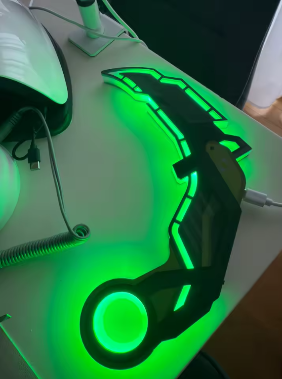 Most desk accessories disappear at night. This one comes alive. Designed for gaming setups where the lights go off and the screen stays on.